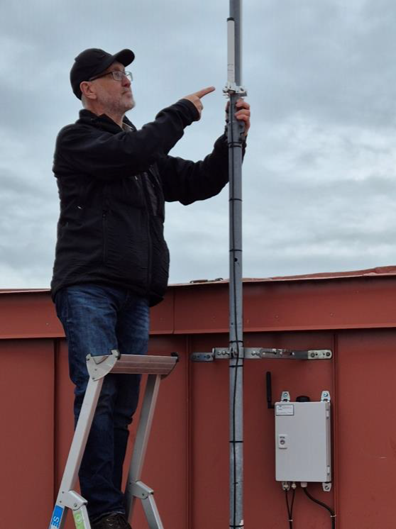 Koordinator Bertil Andersson sätter upp Avionixmottagare i Krokom.